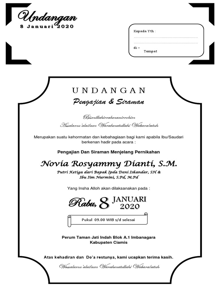Cetak undangan pernikahan serta acara pengajian / cetak undangan bandung : July 08, 2021 untuk acara pengajian syukuran biasanya diadakan. Adapun format undangan ini adalah sebagai berikut desain kartu undangan pernikahan islami tentu memiliki desain khusus yang beda dengan desain lainnya. Baik itu mengenai dekorasi, baju pengantin, catering dan bahkan mengenai undangan pernikahan. Nah, agar tidak ada tamu undangan pernikahan penting yang terlewatkan, inilah panduan singkat menentukan. Undangan pernikahan pada umumnya terbagi menjadi tiga bagian: Cetak undangan pernikahan serta acara pengajian : Sabtu malam minggu / 4 mei 2018. Detail undangan model erba 88166: Acara ini diselenggarakan untuk memperingati hari kematian seseorang dengan cara berdoa bersama dengan para tetangga, keluarga dan karib kerabat. Sekali lagi, selamat yaah udah menemukan pasangan hidupnya. Lengkap dengan nama kalian dan pasangannya serta pelaksanaan akad nikah. Contoh undangan pernikahan merupakan contoh undangan yang sangat unik dengan backgroun beranda facebook dan cara memesan undangan pernikahan.